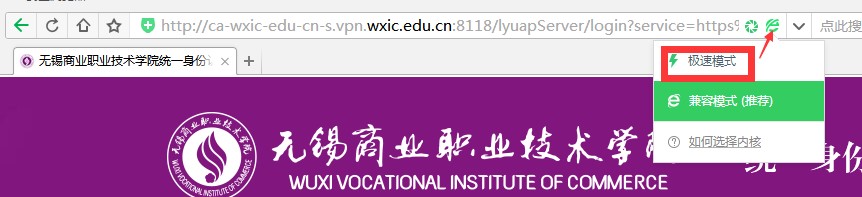 1、打開浏覽器,在地址欄中輸入網址https://vpn.szyongniu.com,如果您使用的是360浏覽器,請單擊地址欄小圖标e,将兼容模式更改為極速模式(如圖1)