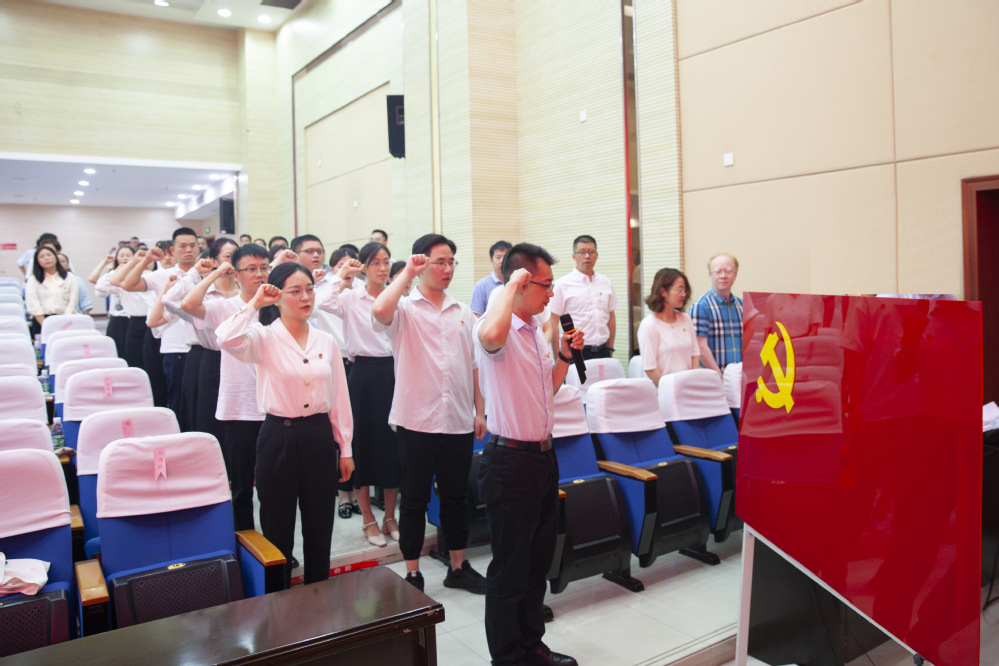 在全場熱烈的掌聲中,獲獎個人和獲獎集體代表依次上台接受表彰。經濟管理學院黨總支市場營銷教師黨支部書記田淑波老師、旅遊烹饪學院黨總支徐橋猛老師、團委宋濤老師、《景觀設計實務》課程教學團隊蔣蕙老師分别代表受表彰的集體和個人在會上交流發言。黨委組織部負責人李銜作為領誓人帶領全體新黨員和新入職黨員教師進行了入黨宣誓。