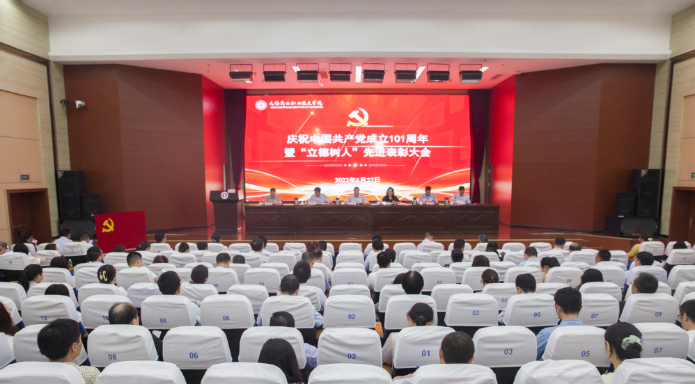 6月27日,學校在圖書館報告廳隆重召開慶祝中國共産黨成立101周年暨表彰“立德樹人”先進大會,黨委書記張志祥出席會議并講話,黨委副書記桂海進,紀委書記王建鋒,黨委委員、副院長馮颀軍,黨委委員、黨委組織部部長馬慧,黨委委員、黨委宣傳部部長王靖出席會議,大會由桂海進副書記主持。